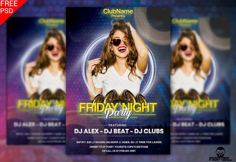 Friday Night Party Flyer is available to free download. Friday Night Party Flyer  is the best way to promote and advertise your business. It is suitable for personal, business organizations and different agencies.  The specialty of this Friday Night Party Flyer  is that you will not have to work hard to edit it. It is a clean and elegant design particularly designed to attract target customers. Friday Night Party Flyer is highly customization which makes it very easy to edit. It contains 300 dpi ready to print CMYK PSD files. If you are using this file please give some credits to psddaddy.com. hope you guys enjoy it and I hope this will help you benefit your project as well. Do not forget to Share if you found this helpful.